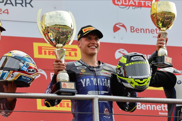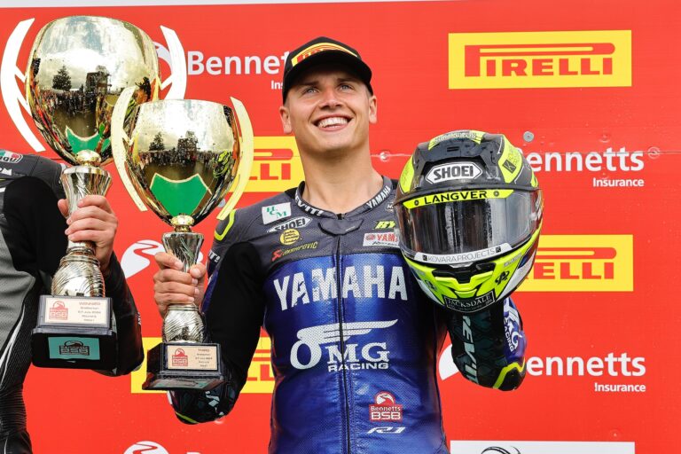 Kyle Ryde rode his heart out in the opening Bennetts British Superbike Championship race of the weekend, securing a sensational race win with team-mate Ryan Vickers following in second. OMG GRILLA Yamaha’s Kyle Ryde stormed