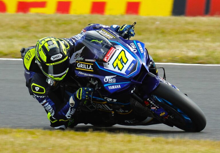 Kyle Ryde was flying the flag solo for the OMG GRILLA Yamaha team today after Ryan Vickers was ruled out of action with illness. The Nottinghamshire rider brought his R1 home in two wet races,