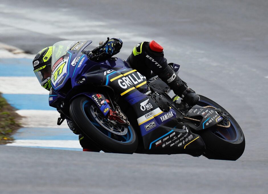 Kyle Ryde was flying the flag solo for the OMG GRILLA Yamaha team today after Ryan Vickers was ruled out of action with illness. The Nottinghamshire rider brought his R1 home in two wet races, finishing in 14th and 15th place respectively.